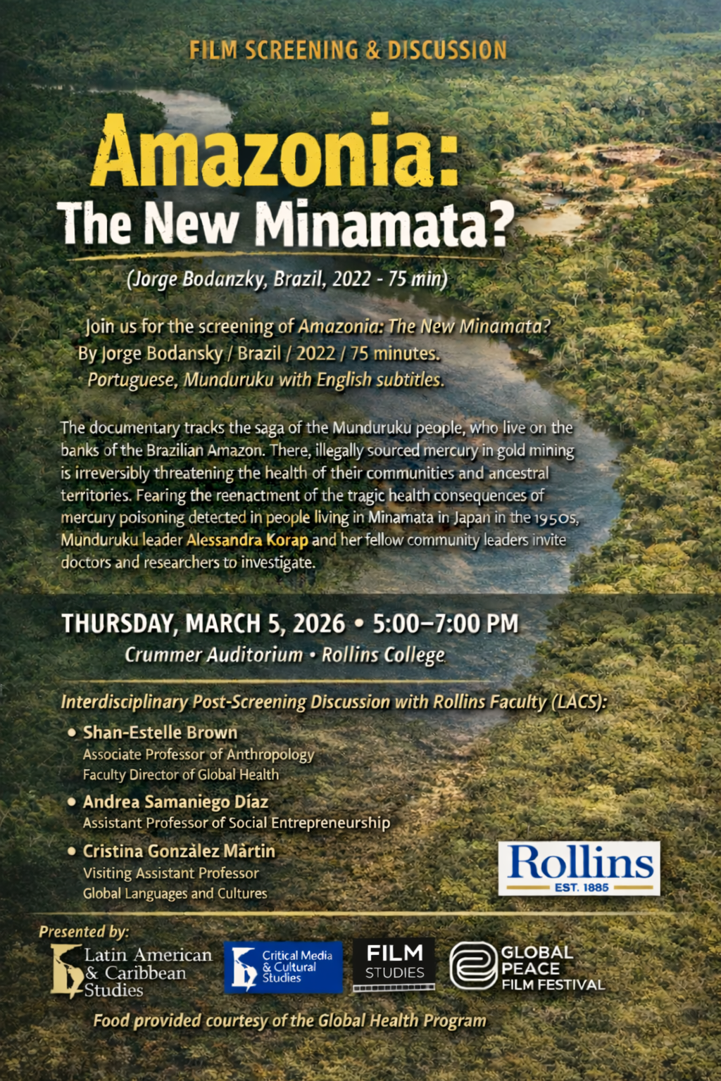 Scheduled for Thursday, March 5, 5:00–7:00 pm at Crummer Auditorium: